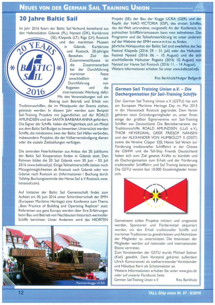 We are very proud to be part of the latest version of „TALL-SHIPnews“ magazin. Thanks for spreading the word! Please download the article as pdf here.